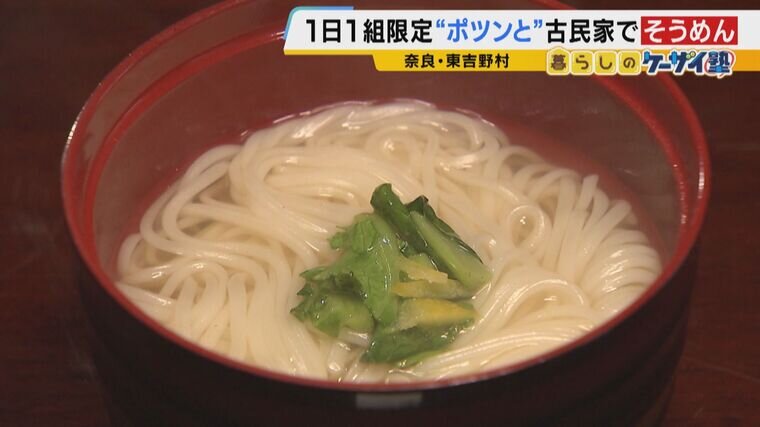 ここで食べられるのは「そうめん」。吉野地方の名産品・葛粉を練りこんだ「手延べ葛そうめん」です。
