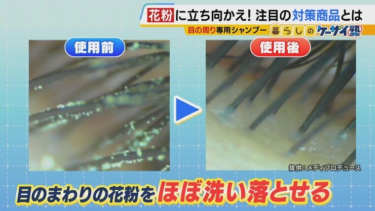 (メディプロデュース 担当者・奥山さん)「しっかりと目の際を洗ってあげることで、花粉はもちろん、ドライアイの対策にもなる」
