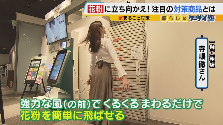(一条工務店 寺嶋徹さん)「手で払うとなると、手で届かない場所やはたきもれがある。強力な風(の前)でくるくるっとまわるだけで花粉を簡単に飛ばせる」