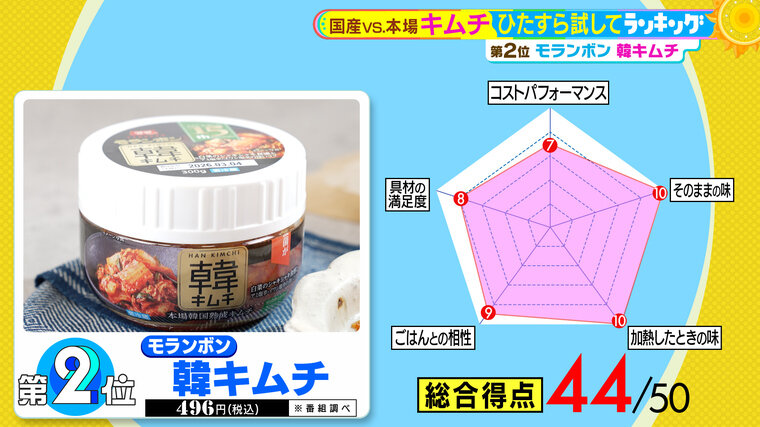 第2位は、モランボンの『韓キムチ』(税込496円 ※番組調べ)。
