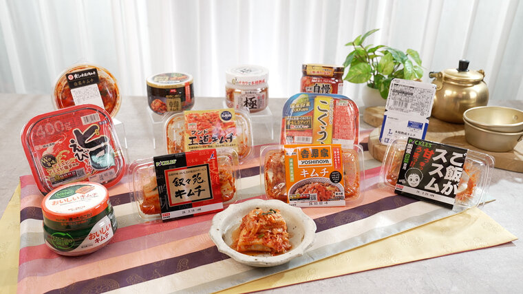 今回は、スーパーやコンビニなどで買える「キムチ」12種類を比較。チェックポイントは、①コストパフォーマンス ②具材の満足度 ③そのままの味 ④ごはんとの相性 ⑤加熱したときの味 の5項目で、各項目10点満点の合計点で総合ランキングを決定した。