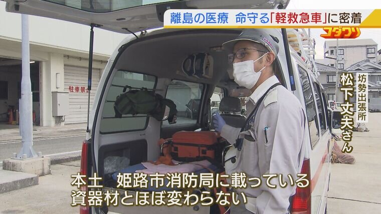 軽救急車を運用しているのは姫路市消防局の「坊勢出張所」。元々この島には救急車はなく、島の職員が患者を搬送していました。姫路市は島の救急医療を確保するために、10年前に国に許可を得て、道幅が狭い離島でも走れる小さな救急車を作ったのです。