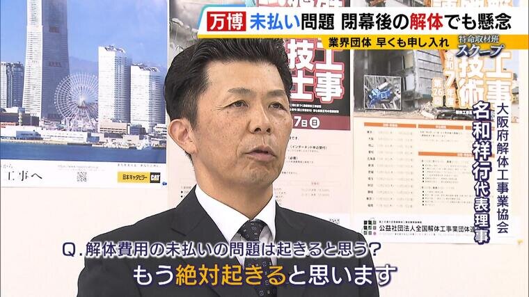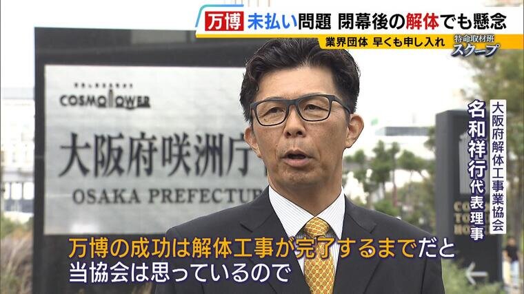 (大阪府解体工事業協会 名和祥行代表理事)「万博の成功は、解体工事が完了するまでだと当協会は思っているので、現在の未払い問題であるとか、施工条件の明確化など、懸念材料がないようにすることをお願いした」