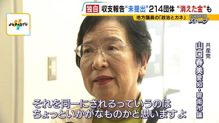さらに、政治とカネを厳しく追及する政党の議員も未提出でした。愛知県碧南市の共産党・山口春美市議です。