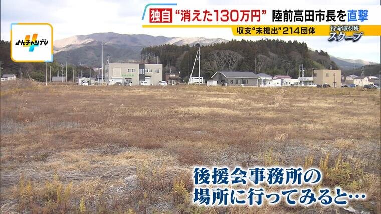 いったい130万円はどこへ?取材班は早速、陸前高田へ向かいました。まず、後援会の事務所があるとされる場所に行ってみるとそこにあったのは広大な空き地。後援会がいまどうなっているのか全く分かりませんでした。