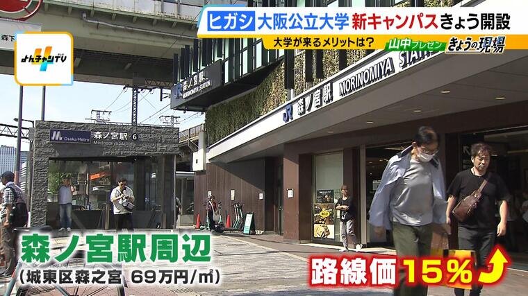 大学周辺の飲食店や商業施設だけでなく、一人暮らしの学生や教職員が住む住宅など経済効果は大きいです。実際に、新駅周辺の基準地価、住宅地の上昇率が8.1%と大阪市の平均6.1%を上回っています。