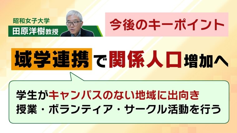このように各地で大学跡地という「穴」が生まれる中で、今後のキーポイントとなるのが『域学連携で「関係人口」を増加へ』と田原教授は話します。