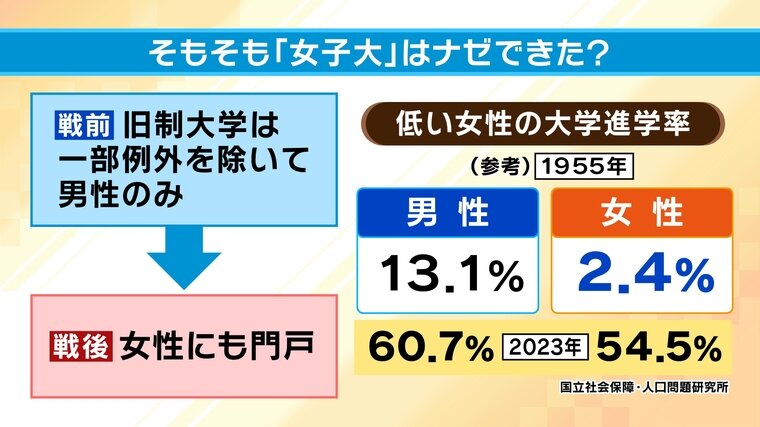 そもそも女子大はなぜできたのか。戦前の旧制大学は一部例外を除いて男性のみが通える場所でした。