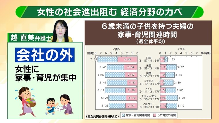 「女性の社会進出」は"高市総理"で進む?初の女性総理となれば「心理的ハードルは下がるはず」前大津市長は指摘 女性の家事・育児の時間は男性より「6時間」も多い!?政治・経済のジェンダーギャップ改善なるか
