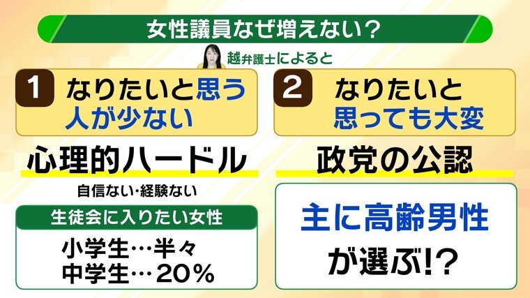 政治:女性議員なぜ増えない?自信・経験の少なさから「なりたいと思う人が少ない」