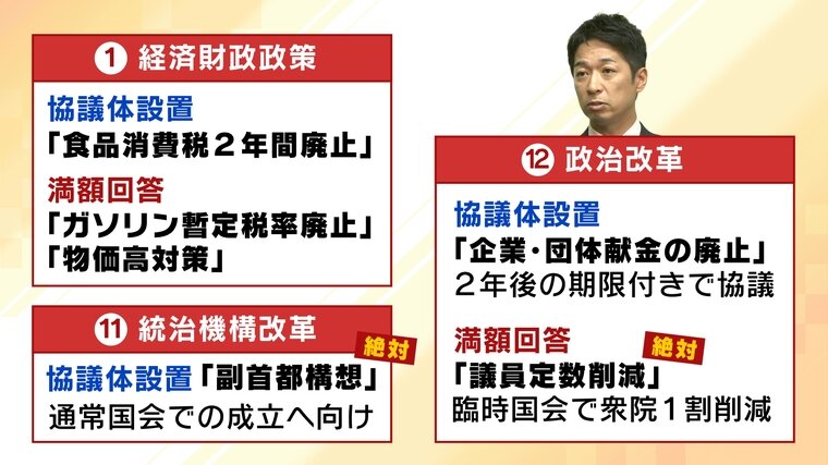維新が要求「12の政策」“満額回答”も