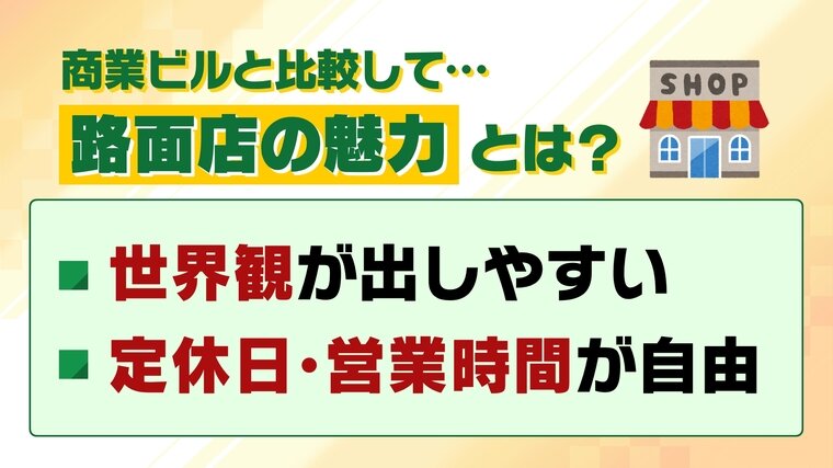 商業ビルと比べたとき、路面店には次のような魅力があると言います。