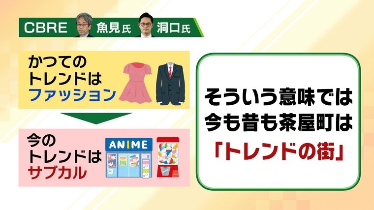 かつては、若者が集まる街=「ファッション」の街でしたが、今のトレンドはアニメ・マンガといった「サブカル」。こうした意味では、「今も昔も茶屋町は“トレンドの街”」と言えると、魚見氏・洞口氏は指摘しています。