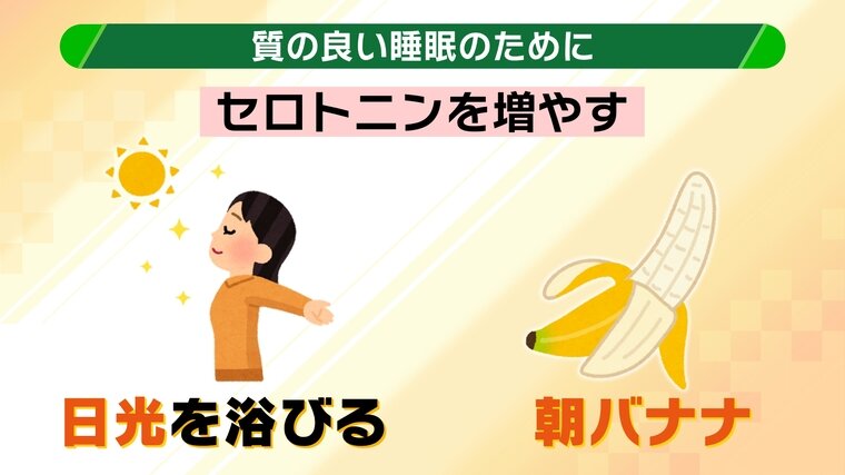 質の高い睡眠のカギとなるのが「セロトニン」。日光を浴びる、朝にバナナを食べるといった習慣がセロトニン増加につながります。