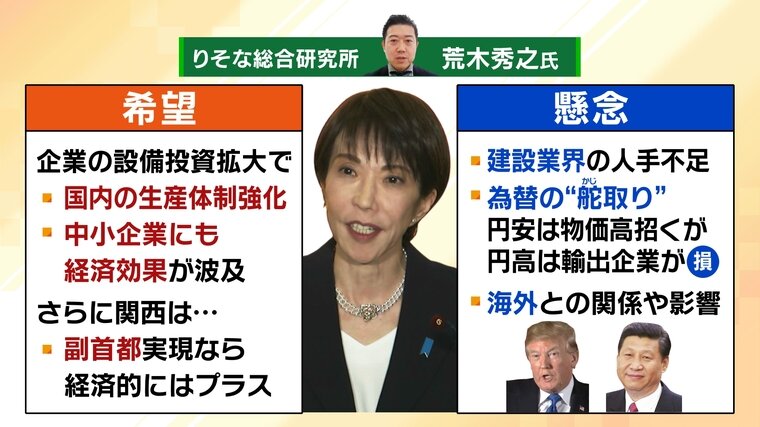 日本経済の2026年の展望。りそな総合研究所の荒木秀之主席研究員が注目するのは、過去の経済政策から、企業の「設備投資」重視へと打ち出した高市政権の政策だ。経済安全保障の名の下で半導体、資源エネルギー、造船など17分野に絞り込み、設備投資に対する税の優遇策は、本当に日本経済を変えられるのか。