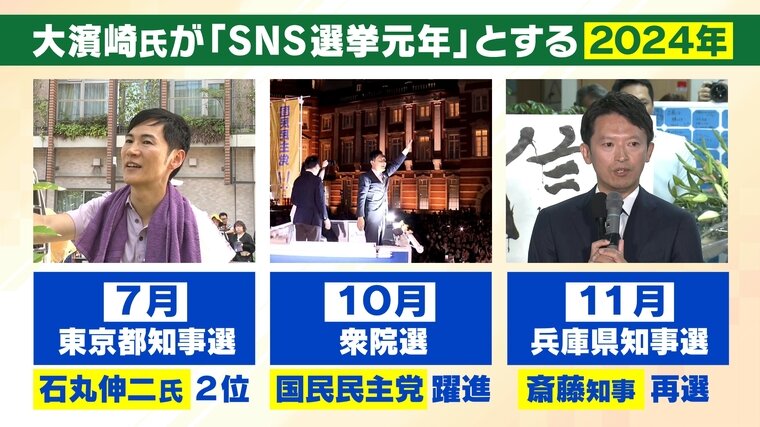 一方、本当の「SNS戦挙元年」は2024年だと大濱崎氏は指摘。「SNSが世論を形成し、それが投票行動に結びついた」印象的な年でした。