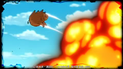 「ローリングハムアタック!!」とギーラに向かって転がって行ったものの、返り討ちにあって丸焦げになったホーク!