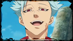 バンは願いを叶えるためにメリオダスを狙い、「愛してるぜ、団ちょ」と言いながら三節棍を振るう。