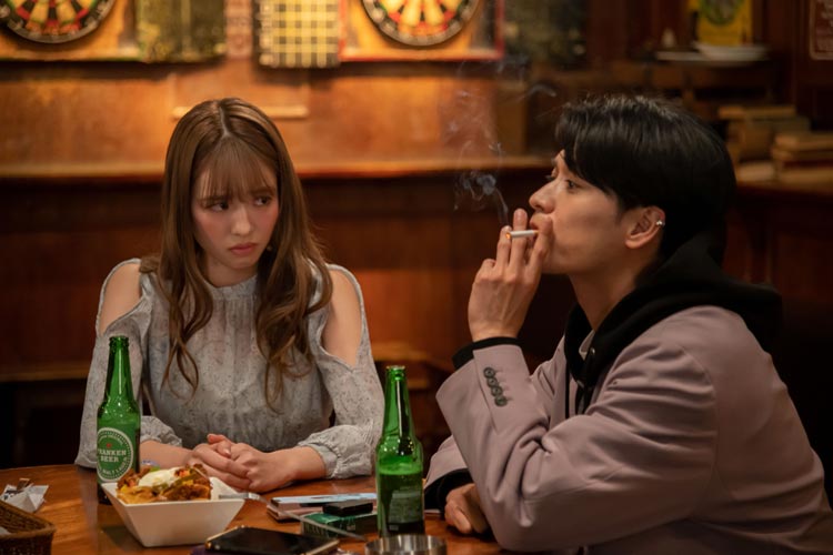 一方の萌は、ホストの楓(高野洸)からこまめに連絡がくるが、営業メールだと思い、返信せずにいた。そんな中、大学の仲間との飲み会に行った萌は、行きつけのバーに彼らを連れて行くことになる。自分の居場所だったバーでも華やかに振る舞うリナ(横田真悠)を見て、惨めな気持ちになる萌。思わず店を飛び出した萌がスマホを見ると、そこには楓からの着信があり…。
