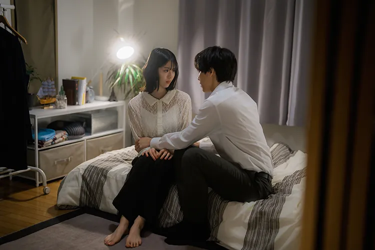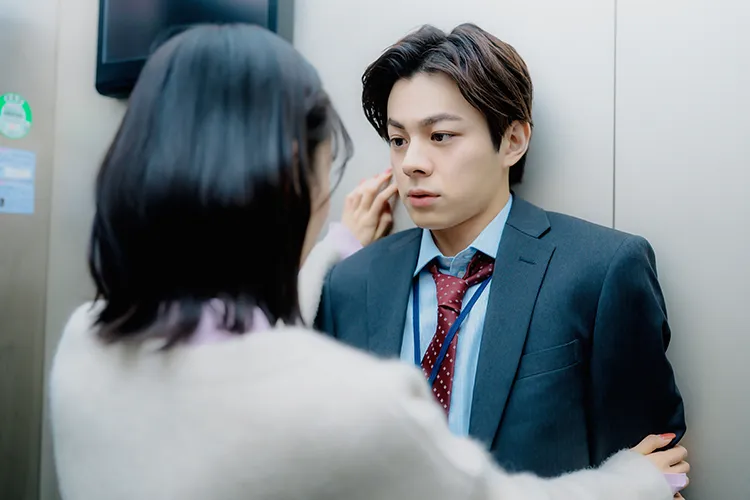 さらに、幸せな二人の前に不穏な影が。後輩の佐伯(宇佐卓真)が、美月への想いを爆発させたのだ。会社のエレベーターに二人きりになった瞬間、佐伯から壁ドンで「俺じゃ、ダメですか?」と迫られる美月。