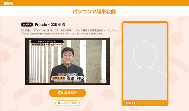 お使いのパソコン性能・使用環境によっては推奨環境でも収録が正常に行えない場合がございます。その際はスマートフォンを使用した従来の収録方法にて投稿をお願いいたします。