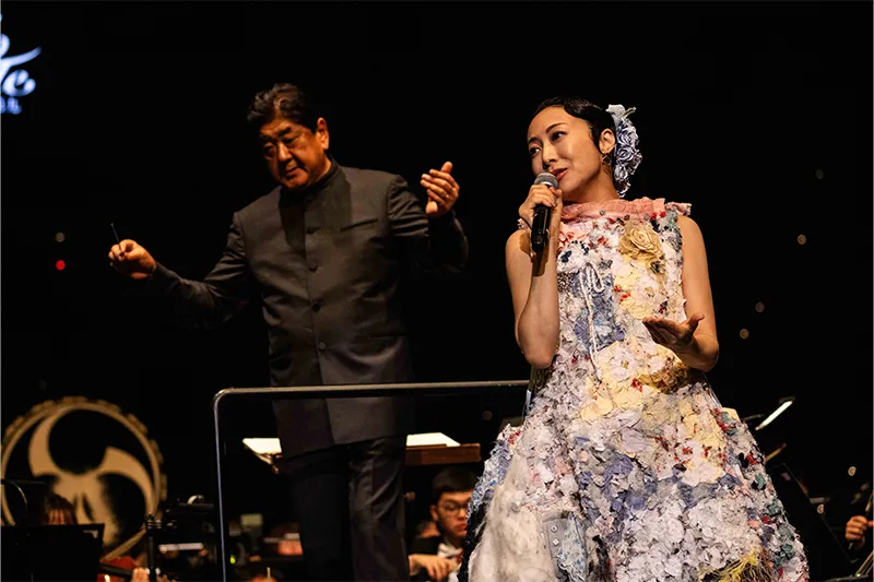 花を思わせるアーティスティックなドレスで一青窈さんが登場。冒頭で、子どもを産んでから、若い世代が自ら命を絶つニュースに触れるたび、胸を痛めてきたと語ります。その想いから、友人の森山直太朗さんに依頼して生まれたのが、1曲目『耳をすます』でした。続いて、佐渡さんとオーケストラとの共演で、デビュー曲『もらい泣き』、そして新曲『アレキサンドライト』を披露。一青窈さんはお父様が台湾生まれで、その独特の節回しには、台湾の民謡を意識した表現もあるそうです。