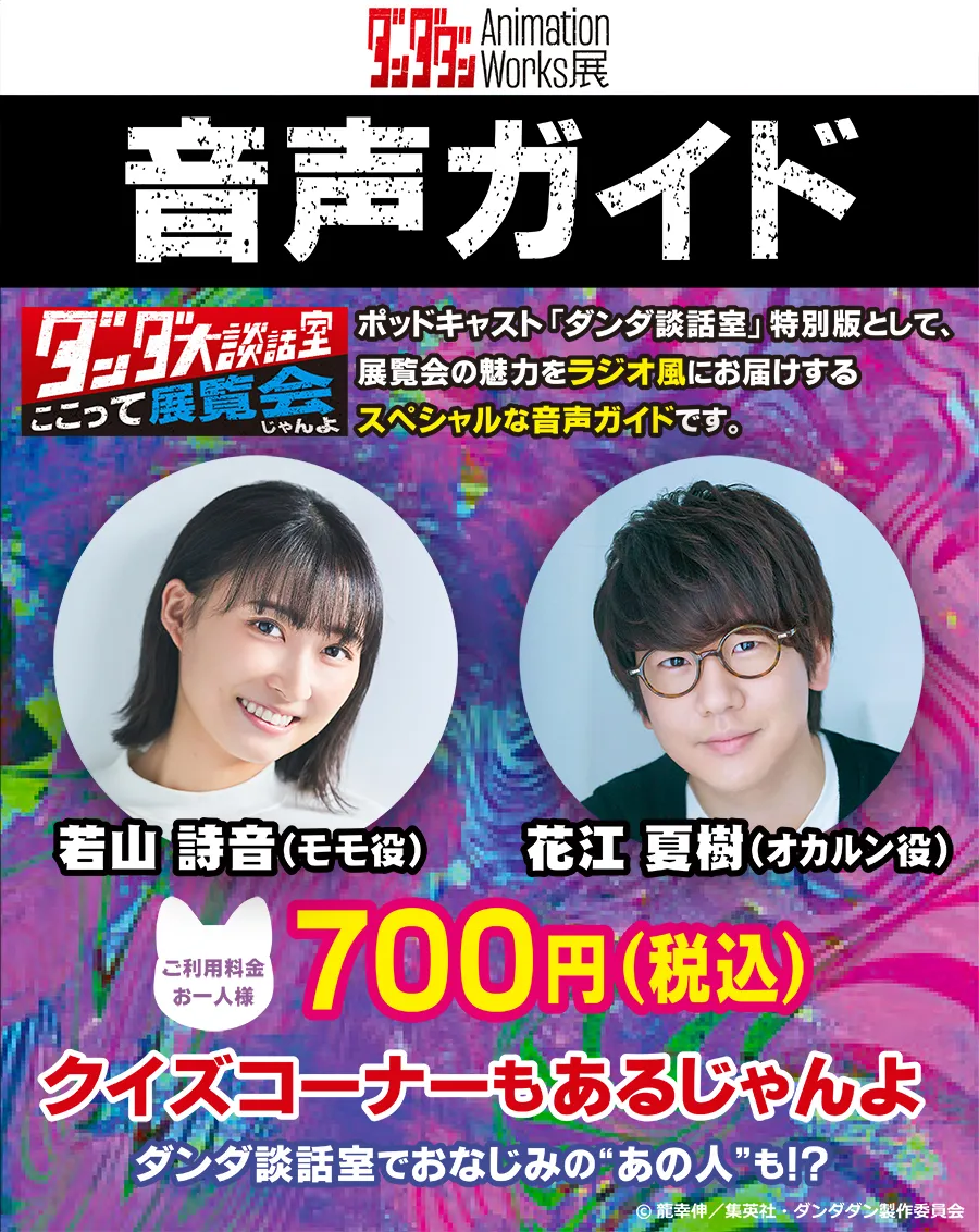 TVアニメ『ダンダダン』のポッドキャスト「ダンダ談話室」の特別版として、展覧会の魅力をラジオ風にお届けするスペシャルな音声ガイドです。