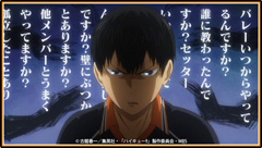 孤爪に試合の感想を尋ねたものの「別に…普通…かなぁ」と言われた日向は、「次は絶対必死にさせて、「別に」以外のこと言わせるからな!」と宣言する。