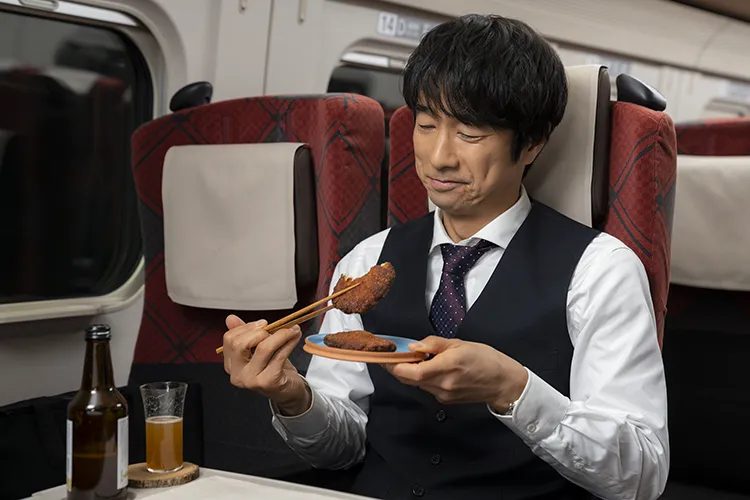 損保会社の内部監査室で働き、日帰り出張で全国を飛び回っているサラリーマン高宮進。彼の密かな楽しみは、出張先で見つけた選りすぐりのご当地グルメを帰りの新幹線でひとり堪能すること。その土地ならではの酒と肴、駅弁、さらにはスイーツまで仕入れたら、今宵も、居酒屋新幹線、開店!