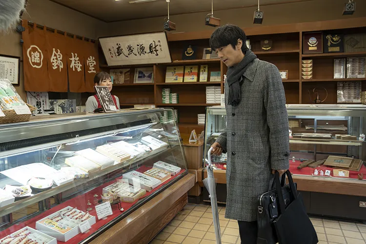 長岡での抜き打ち監査を終え、ひどく疲れた様子の高宮進。発酵と醸造のまち・摂田屋地区に向かい、お団子屋で長岡赤飯、新潟県で最も古い蔵元とされる酒ミュージアムで吟醸酒、発酵ミュージアムでビーフジャーキーを購入。その後、駅ビルで、新潟の代表的な家庭料理・のっぺや、鮭の焼漬け、菊とかぶの酢漬を仕入れていると、「米百俵」と書かれたあげもちのコーナーが目に入る。長岡花火の最後の打ち上げ花火が米百俵花火だった。