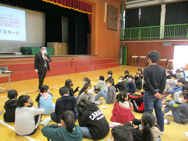 講師:村上嘉章(広報部)、上田崇順(アナウンサー室) 小学5年生 91人