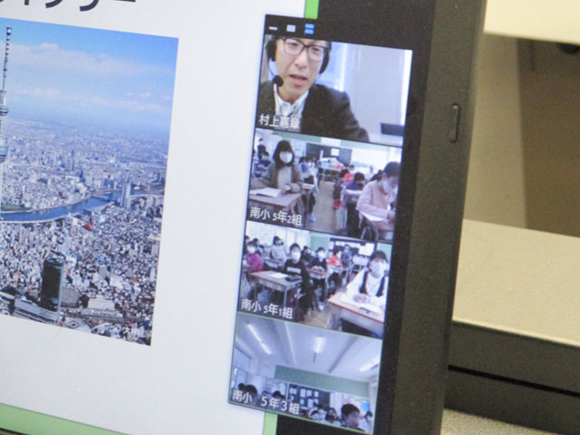 児童とのやり取りにタイムラグが生じたり、児童の発表の声が聞こえにくいなど、オンラインならではの問題はありましたが、児童がマイクの前に出てきて話すなど、授業の中で改善していきました。