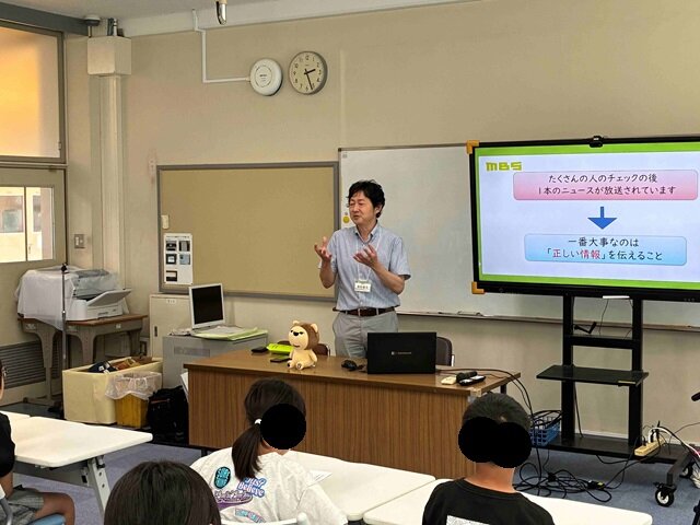 「MBS出張授業」は、当社がCSR活動の一環として、2011年から近畿各地の小学校で実施しているものです。小学5年の社会科の単元「情報とくらしのかかわり」における「放送局の働き」について理解を深めていただくため、報道記者やディレクターなど番組制作経験豊富な社員が講師となって、皆さんの学校にお邪魔し授業を行います。