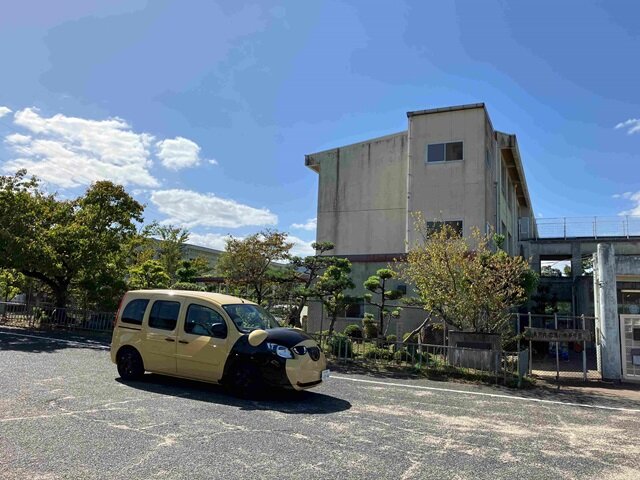 児童たちに見てもらうために、正門を入ってすぐの校舎前に停めさせて頂きました。