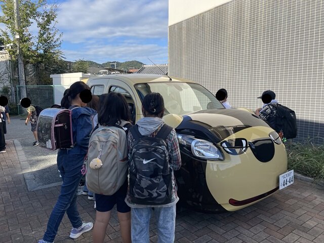 帰りがけには、たくさんの児童さんが手を振って、校門の外まで見送って