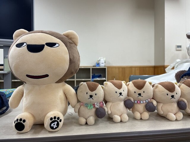 MBSのキャラクター“らいよんチャン”と、東能勢小中学校のキャラクター