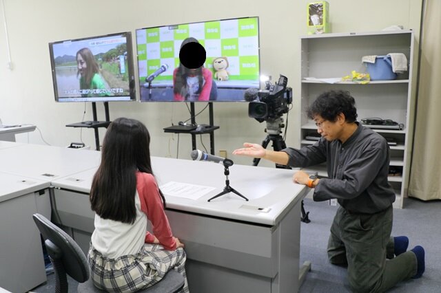 続いて、アナウンサーに挑戦!「がんばれー!」と応援する声も上がる温かい雰囲気のなか、4人の児童が挑戦しました。生放送と同じく「本番まで5秒前、4、3、2、1」と皆で一緒にカウントダウンを行い、挑戦した児童のみなさ、とても上手に読んでいましたよ。