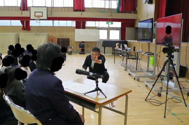 アナウンサー体験には4人の児童が挑戦。練習なしのぶっつけ本番でしたが、みんなとても上手に読めていました!感想を聞くと「緊張した~」と笑顔で答えてくれました。「本番まで5秒前!」カウントダウンも全員でやりました。