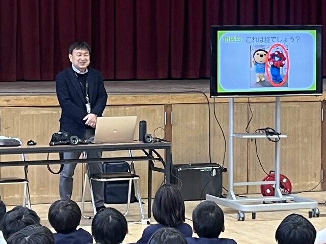 2コマ目は、営業・制作・編成経験のある東郷講師がテレビについてのお話をしました。同じ番組でも地方によって見ることができるチャンネルが違う?番組を作るお金は誰が出しているのか?といったお話や、緊急地震速報やJアラートといった「命を守る」ための放送についてのお話をしました。