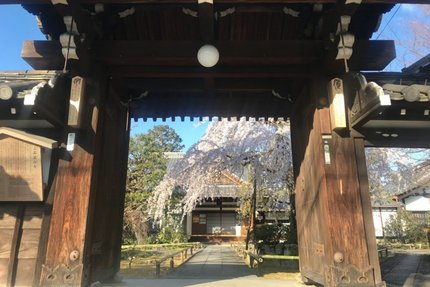 日本も世界も、日ごとに深刻な事態を迎えています。おうちで過ごすなか、「きょうのちしん」で少しだけお花見気分を味わっていただければ幸いです。リアルタイムの開花情報ではなく、京都の桜の名所をゆるりとご紹介しています。空から降り注ぐように咲き誇る枝垂れ桜は、満開時には迫力も感じられるほど。京都には一重咲きの枝垂れ桜の名所もたくさんあります。千本北大路にたたずむ「上品蓮台寺(じょうぼんれんだいじ)」も、そのひとつ。3月下旬に千本通に面した山門をくぐると、見事な枝垂れ桜が出迎えてくれました。通りからも目に飛び込んでくる立派な枝ぶりは、静寂な境内でひときわ華やかな存在感!ほぼ独り占め状態の枝垂れ桜の下をくぐりながら、ときが経つのを忘れて見入ってしまいます。聖徳太子が開基、当時は「香隆寺(こうりゅうじ)」と称していたと伝わる、真言宗智山派の寺院。その後、宇多法皇の勅願により天徳4年(960)に寛空僧正が再建、寺号を上品蓮台寺に改めました。応仁の乱(1467~1477)で伽藍が焼失するも、文禄年間(1592~1596)に性盛上人が再建。この再建で、蓮台野一帯に12もの支院が建立されたことから「十二坊」とも称されたとか。12の支院のうち、現存するのはごくわずかですが、町名の「紫野十二坊町」が名残を伝えています。枝垂れ桜のあとは、ソメイヨシノや八重紅枝垂れ桜が境内を染め上げる「上品蓮台寺」。観光寺院ではないため参拝者も少なく、静寂な境内が桜の美しさをさらに引き立てています。来年の春には、満開の桜の下を思い思いに歩くことができますように。上品蓮台寺(じょうぼんれんだいじ)京都市北区千本通北大路下ル紫野十二坊町33-1市バス停千本北大路下車、徒歩3分ウェブ上でお花見① 平野神社の桜の季節を合図する「魁(さきがけ)」はこちらウェブ上でお花見② 近衛家ゆかりの「本満寺」はこちらウェブ上でお花見③ 京都御苑「近衛邸跡」の糸桜 はこちら
