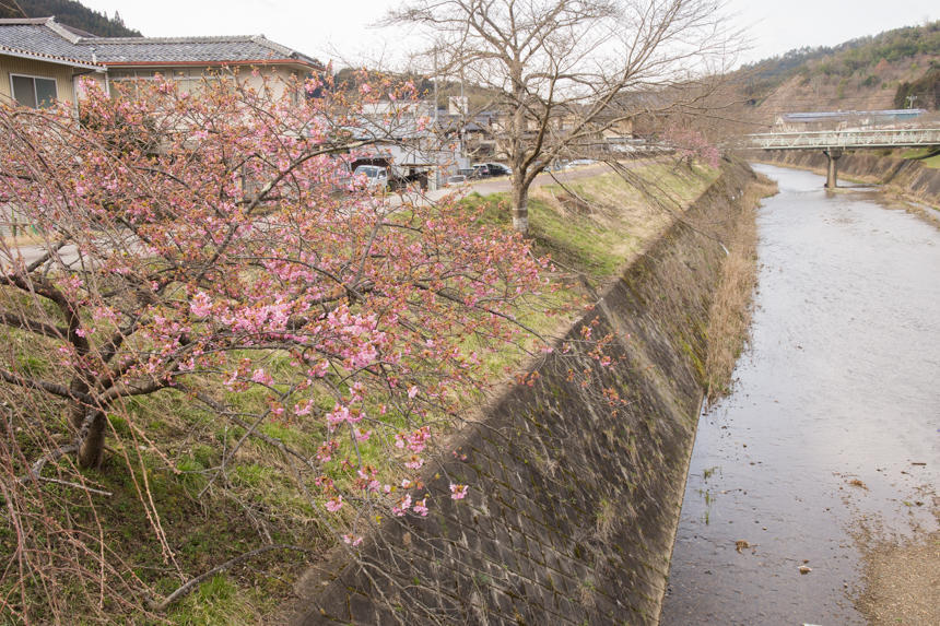 周山の川沿いの木に花が咲いていたので、梅かと思ったら、どうやら早咲きの品種の桜のようです。