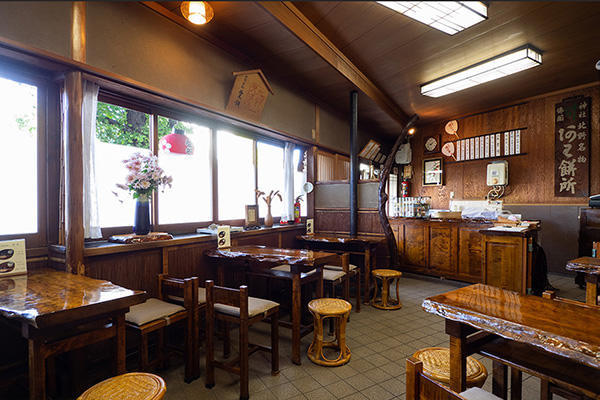 名物の「粟餅」は、充分蒸した粟を店内の臼で搗いた餅に、あんときな粉をまぶした素朴な和菓子。土台の粟餅は、つくり置きせず、一日に何度も搗くのだそうです。粟のぷちぷちした食感が残るしっとりやわらなかな粟餅に、甘さを抑えた上品なこしあんと香ばしいきな粉がよくあいます。※持ち帰り用は5個650円~