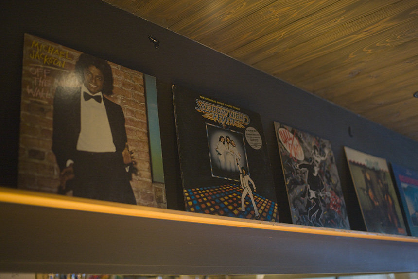 カウンターの上には懐かしいレコードジャケットが。三原さんが好きだという80年代の洋楽も流れ、ノスタルジックな気分にさせる。