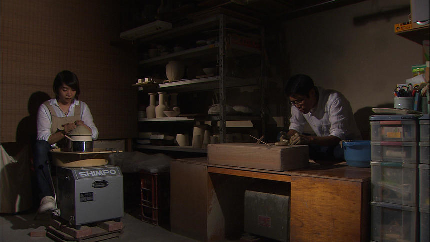 涌波さんは代々、青磁の「青」を受け継いできましたが、3年前から妻・まどかさんと一緒に新しい青磁を作っています。