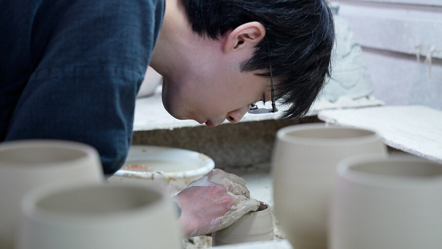 息子であり陶芸家 伊藤純さんの"て"を見つめます。
