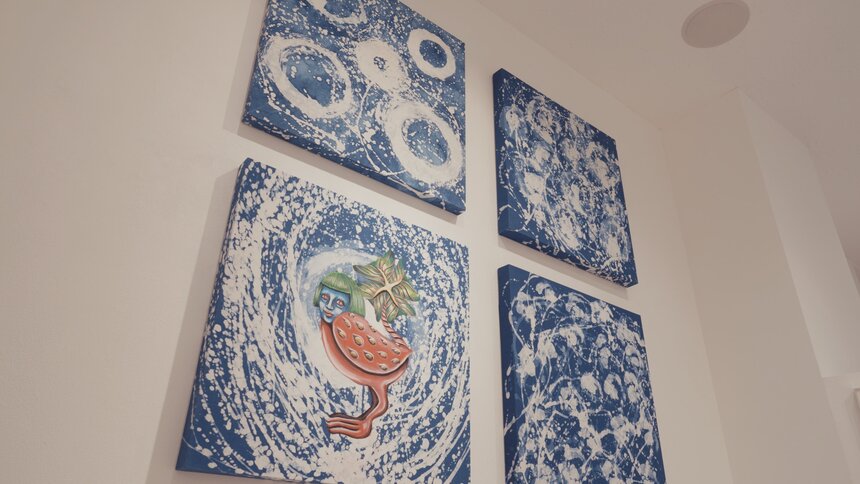 2026年1月には個展「Laugh in Kyoai -京藍の中で笑う」を開催。蜜蝋を使って円を表現した作品が並ぶ中、お笑い芸人とのコラボ作品も発表しメディアでも注目されました。テーマは「京藍×奇笑」です。