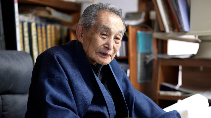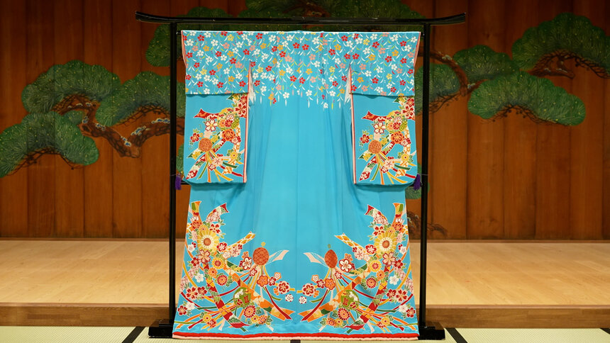 京都に春の訪れを告げる「都をどり」。その象徴ともいえる、総をどりの鮮やかな浅葱(あさぎ)色の衣裳を手掛けるのが今回の主人公・五代 田畑喜八さんです。90歳を迎えた今もなお、現役の職人として筆を走らせています。