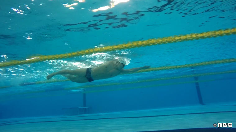 続いて、水中に用意されたのは銀色の板だった。これは瀬戸が中学生の時に父親が作ってくれた鏡で、スタート直後の自らの水中でのフォームを確認するためのものだという。こうした細やかな工夫を、少年時代からずっと重ねてきた。