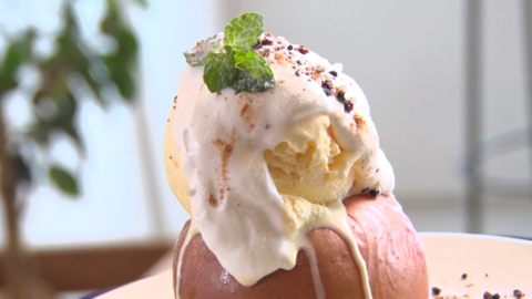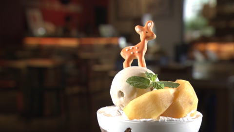 赤いリンゴにアイスをのせて~♪♪あふれる"蜜"が楽しめるパフェ