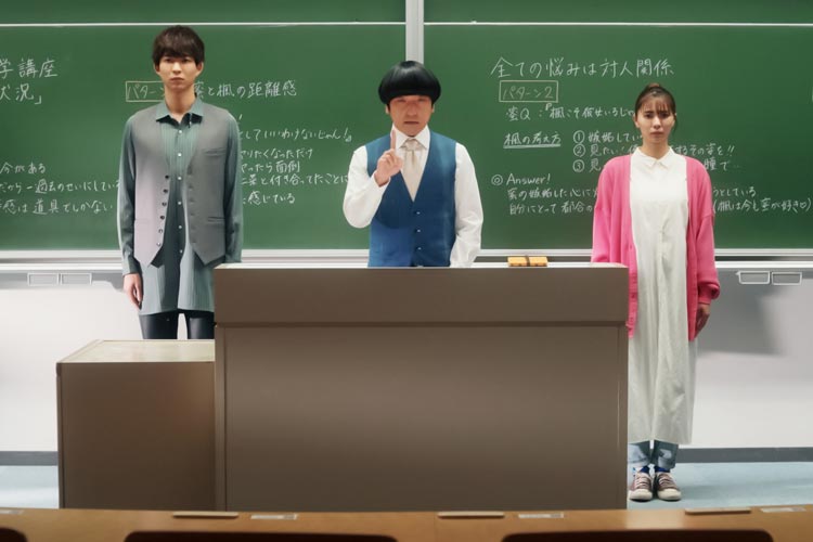 大学の講義中にネガティブな妄想をめぐらせ「楓の心理状況講座」が幕を開ける。